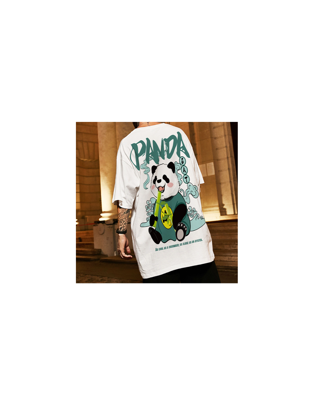 Son coloris beige passe avec tout, et son grand imprimé panda + lettrage graphique donne un look fort, parfait pour ceux qui aiment les pièces qui se remarquent.