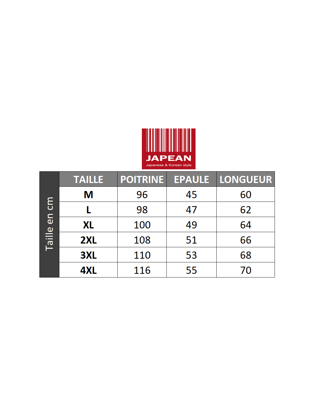 Conseil Japean : Les mensurations sont indiquées dans la galerie d'images !