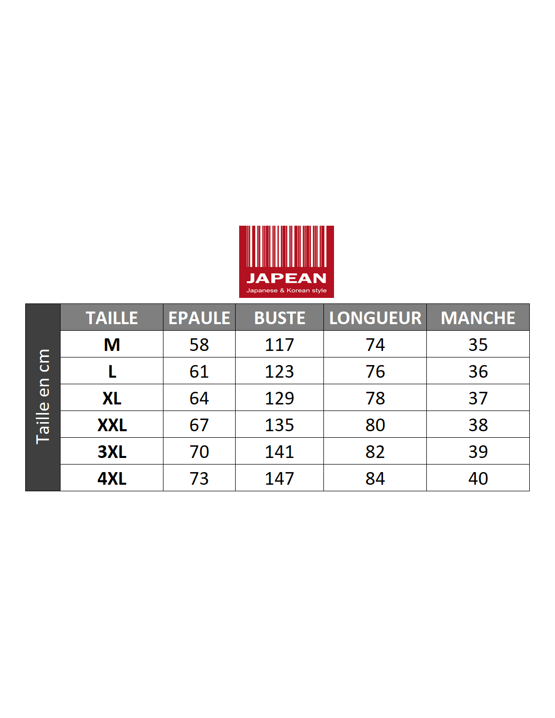 Les mensurations exactes et le guide des tailles sont disponibles dans la galerie d’images.