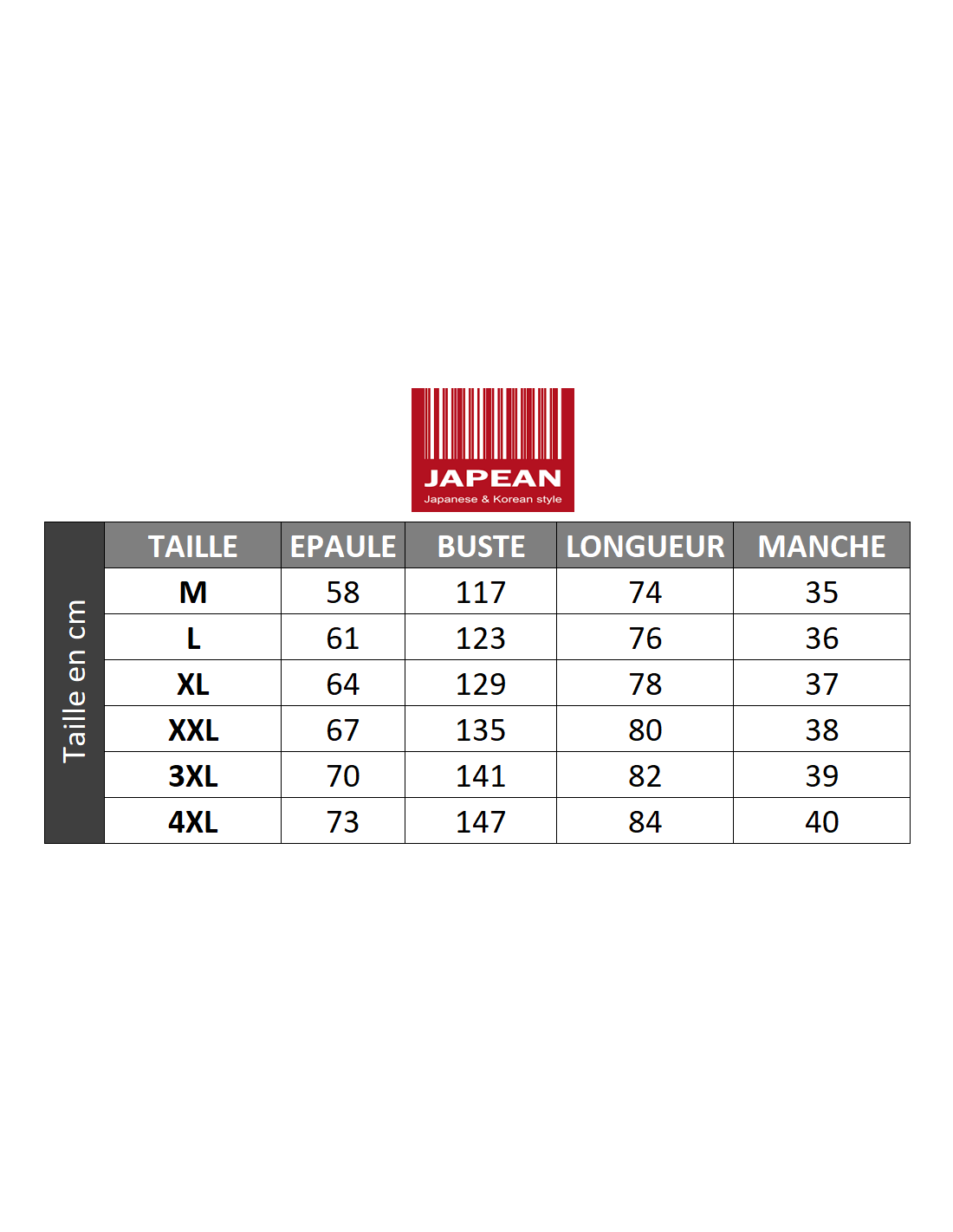 Conseil Japean : Les mensurations sont indiquées dans la galerie d'images.