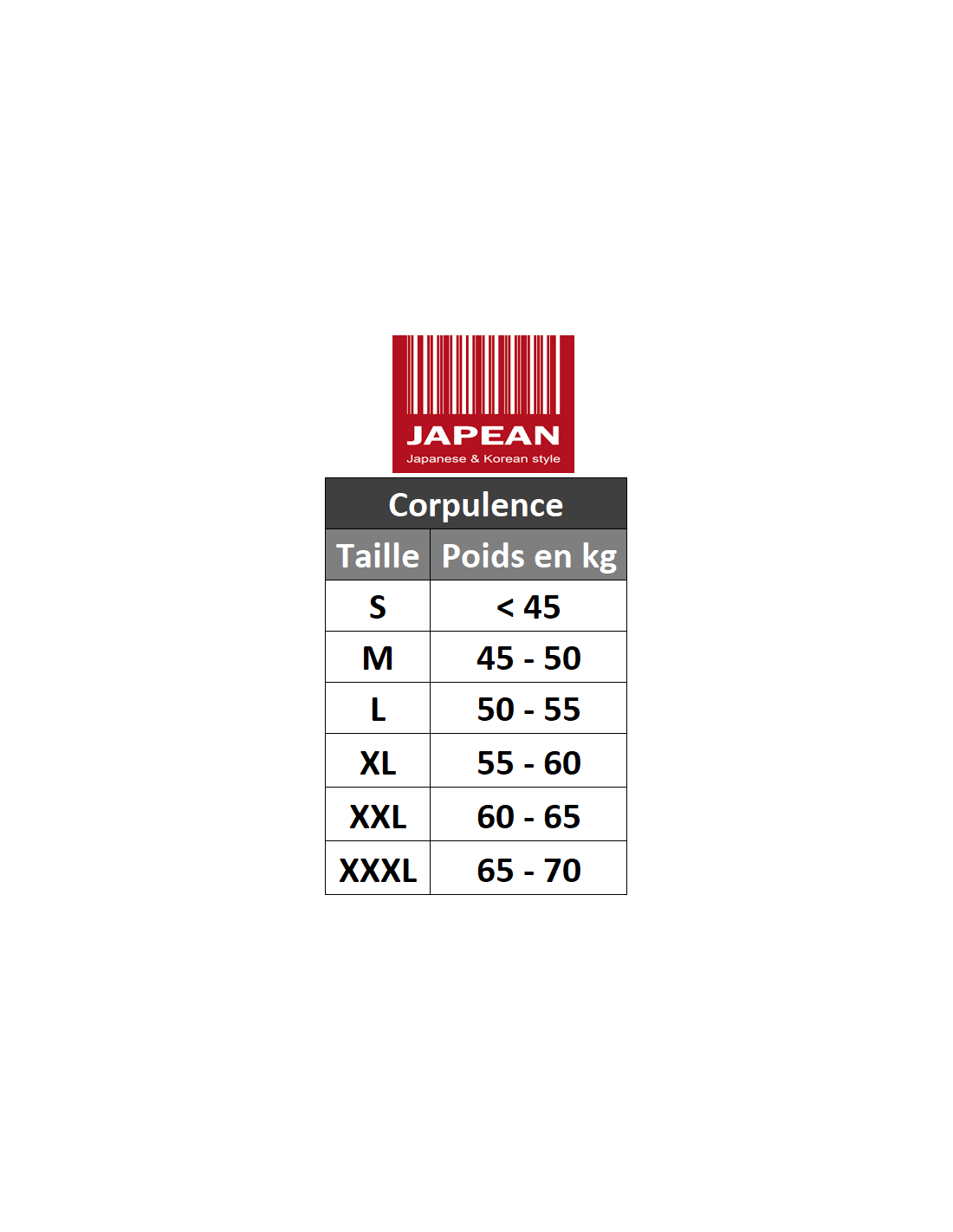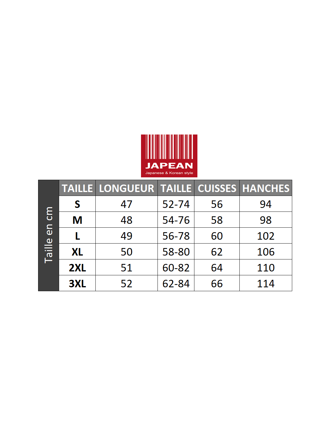 Conseil Japean : les mensurations sont indiquées dans la galerie d'images !
