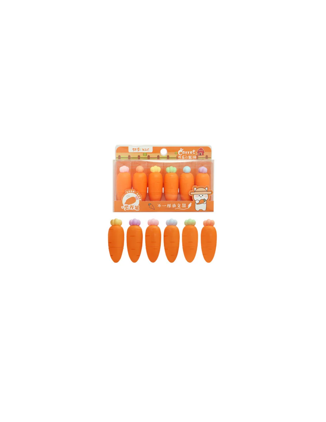 Ces mini surligneurs sont plus qu'adorables ! Leur design en forme de carotte est à la fois original et irrésistiblement mignon, parfait pour égayer votre espace de travail ou votre trousse de papeterie Avec une palette de couleurs pastel comprenant le rose, l'orange, le jaune, le vert, le bleu et le violet, ces surligneurs ajoutent une touche de douceur à vos documents. Que ce soit pour mettre en évidence des notes importantes ou pour ajouter une touche de couleur à vos dessins, ces surligneurs sont là pour vous.