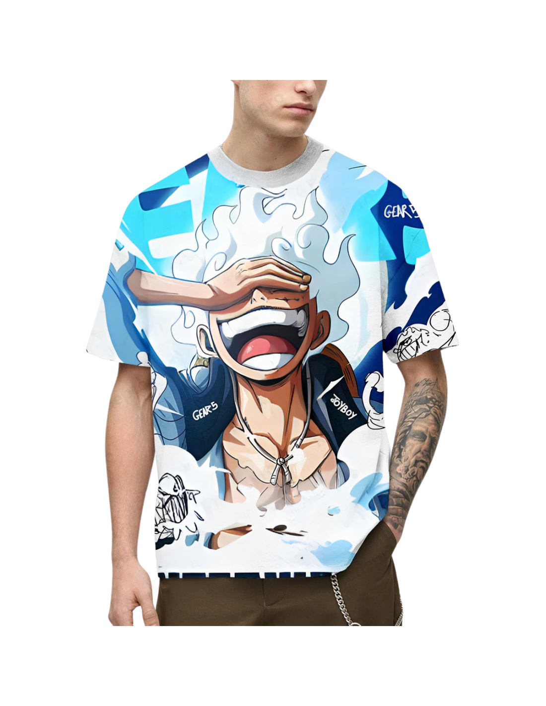 Plongez dans l'univers épique de "One Piece" avec ce T-shirt de cosplay inspiré par Luffy dans sa forme Gear 5. Ce T-shirt vibrant est un must pour tous les fans de la série, offrant non seulement un style unique mais aussi un confort inégalé.