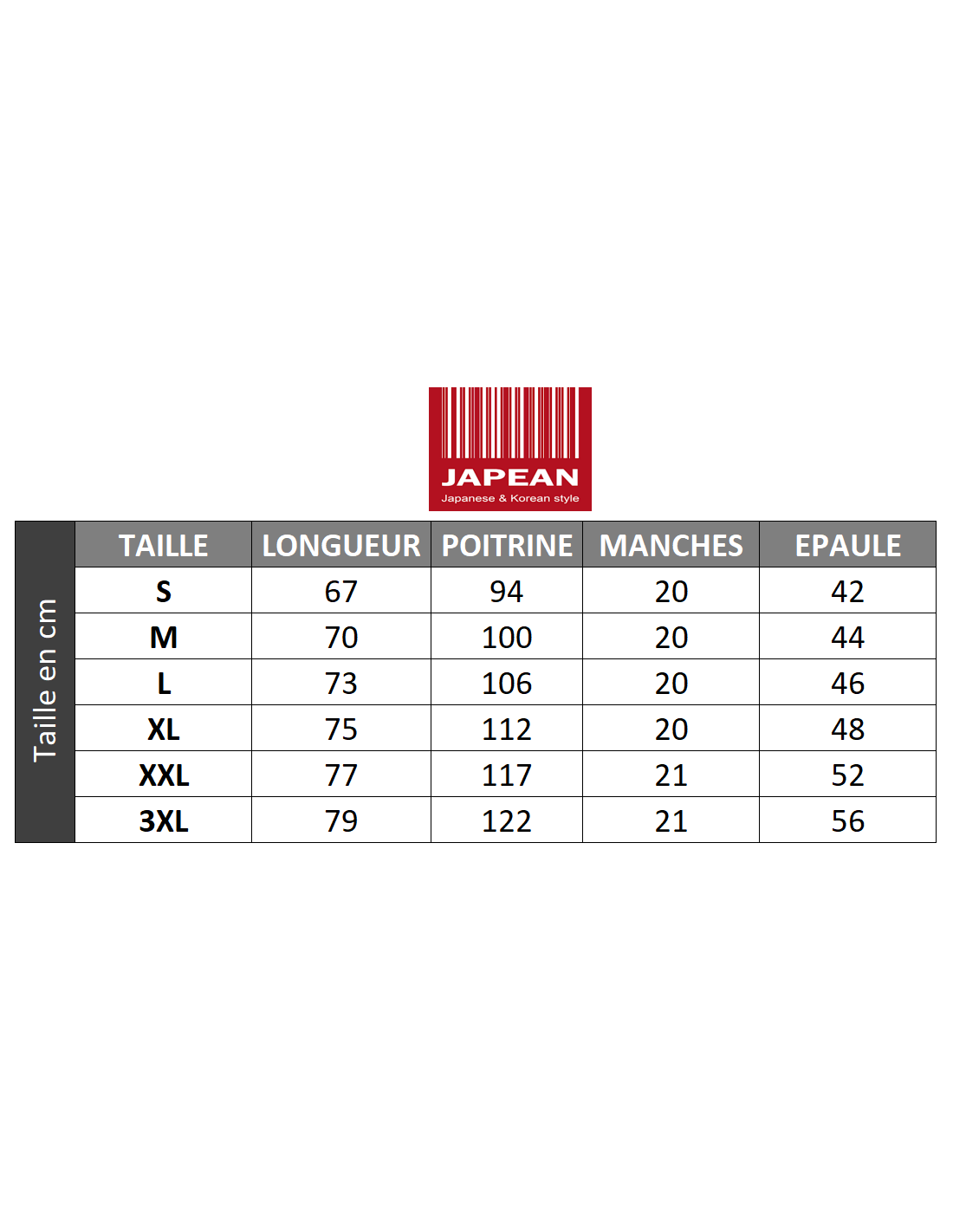 Conseil Japean : Les mensurations sont indiquées dans la galerie d'image