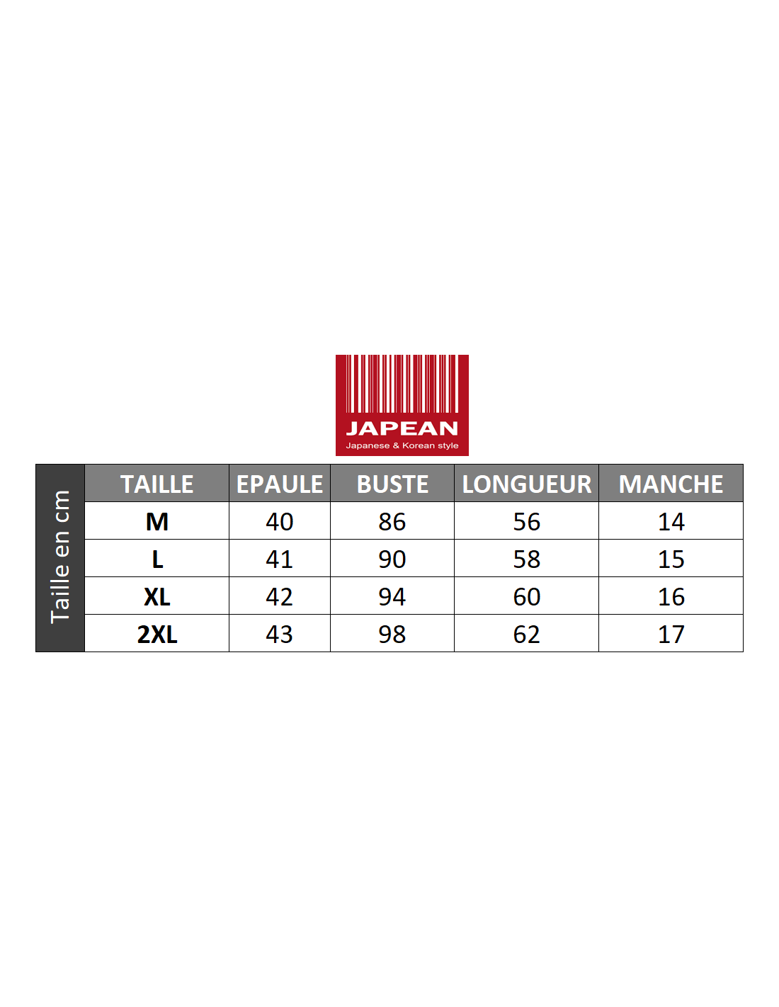 Conseil Japean : Les mensurations sont indiquées dans la galerie d'image