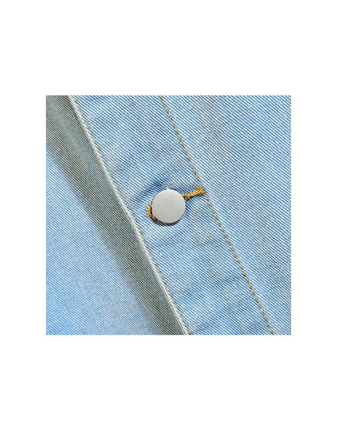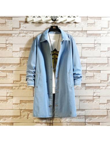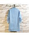 Conçue dans un tissu en jean de qualité, elle offre une coupe droite élégante et moderne qui s'adapte parfaitement à toutes les morphologies. Ses manches longues et son col classique apportent une touche intemporelle, tandis que ses deux poches latérales pratiques permettent de transporter vos essentiels avec style.
