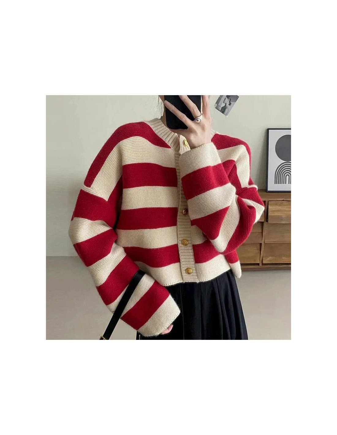 Ajoutez une touche de fraîcheur à votre garde-robe avec ce cardigan à rayures rouges et écrues. Son design oversize, combiné à des boutons dorés élégants, offre un style moderne et confortable.