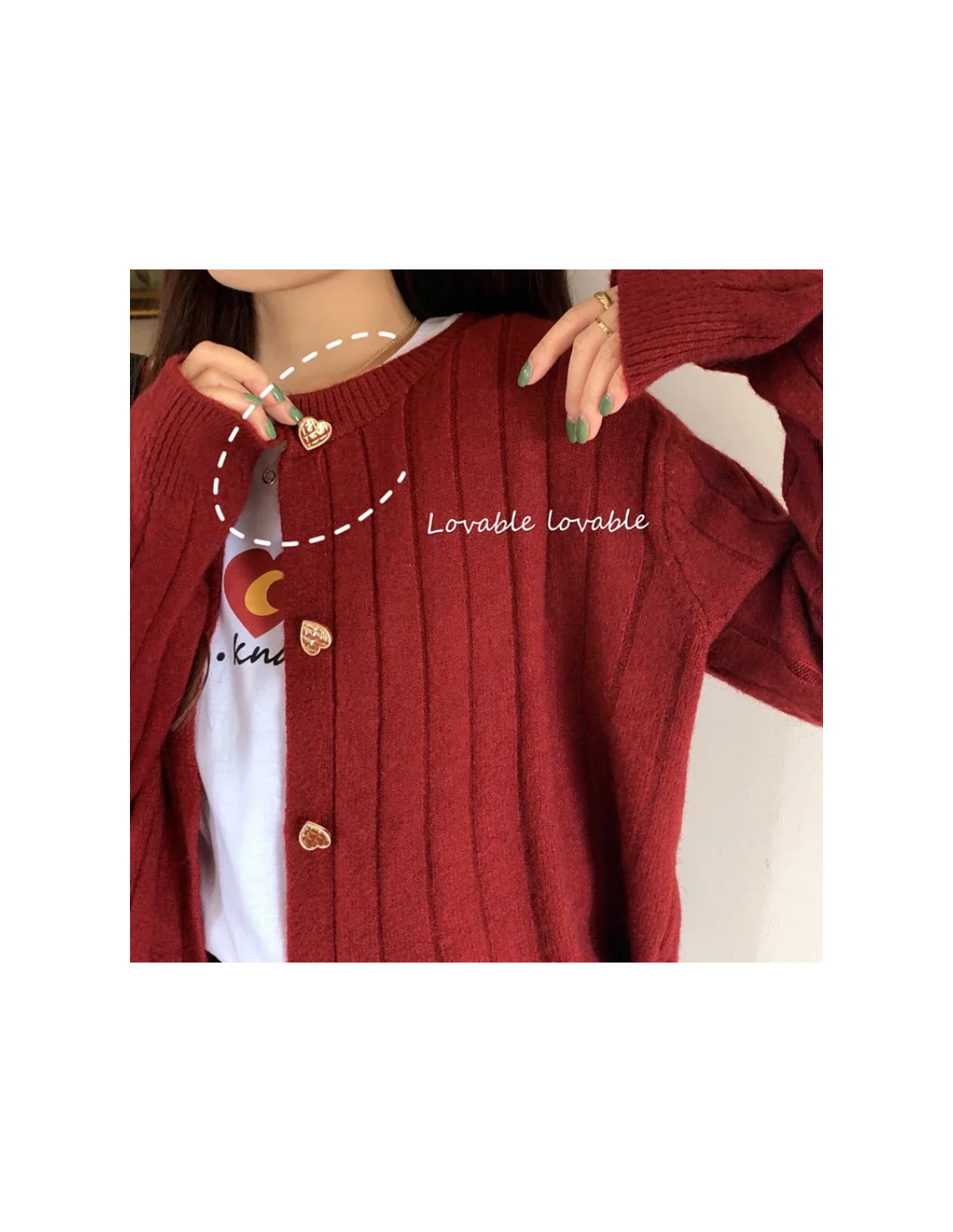 On choisit le Chandail Rouge Romanchikku quand on veut une pièce qui réchauffe la silhouette et la rend tout de suite plus soignée : un rouge profond, une maille annoncée coton / tricot, et surtout ces boutons dorés en forme de cœur qui signent le style sans en faire trop. La page parle aussi de manches longues et d’une coupe classique, donc on est sur un cardigan facile à porter, mais avec un vrai détail qui accroche l’œil (clin d’œil sobre).