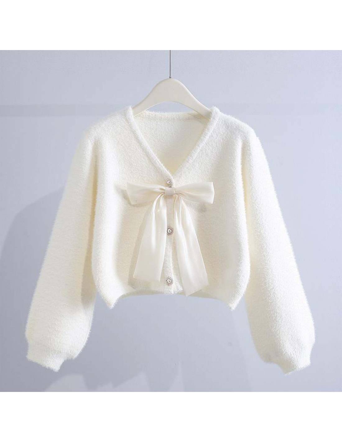 Le Cardigan Doux Ribon mise sur une élégance douce : la description annonce un tissu “moelleux et chaud”, tout en restant léger et agréable à porter. Le vrai twist, c’est ce grand nœud en satin placé à l’avant, accompagné de boutons ornés : on obtient un rendu romantique, un peu “preppy”, qui se glisse facilement dans un vestiaire streetwear quand le reste reste clean (clin d’œil discret : la pièce parfaite quand on veut être soigné·e sans en faire trop).