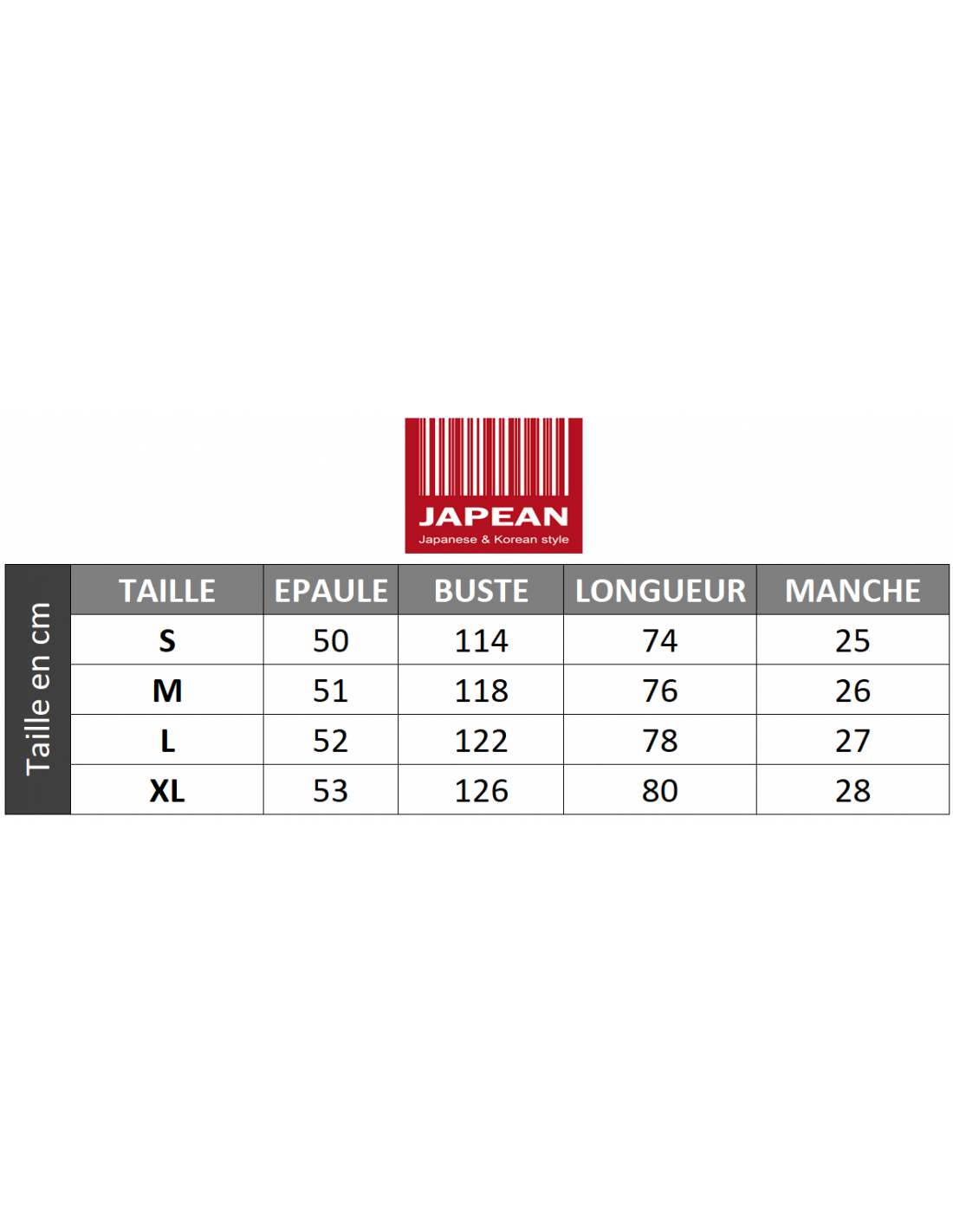 Conseil Japean : les mensurations sont indiqués dans la galerie d'images !