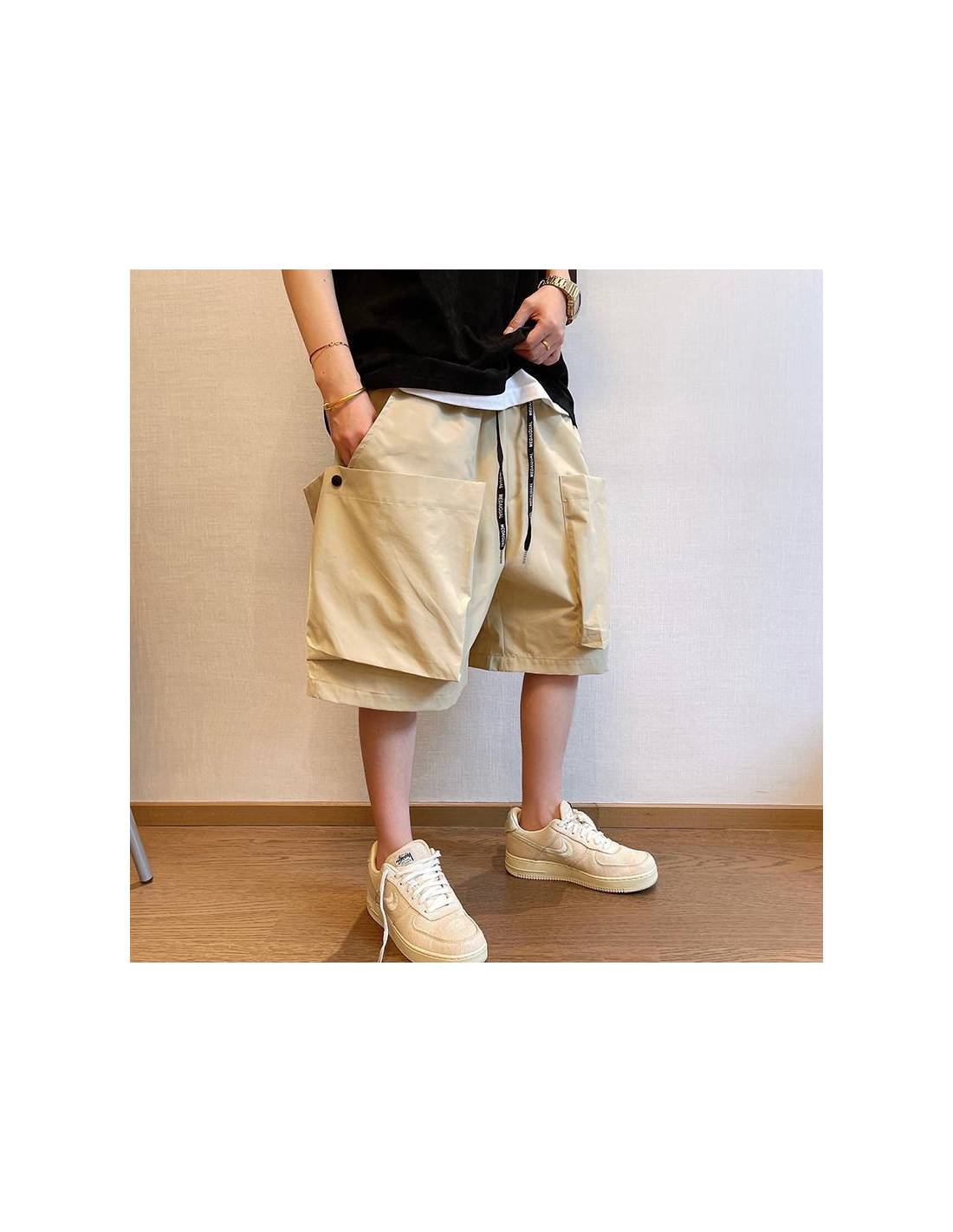Optez pour un style streetwear japonais avec ce short cargo pour homme à la coupe ample et décontractée.