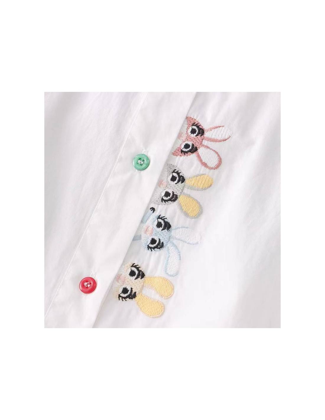✔ Détails décrits : broderies colorées de lapins au niveau de la boutonnière